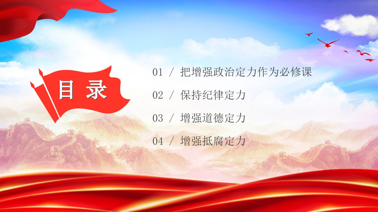 2024微党课增强政治、纪律、道德、抵腐“四个定力”党课ppt模板(带内容)基层党委党支部党员干部ppt模板下载