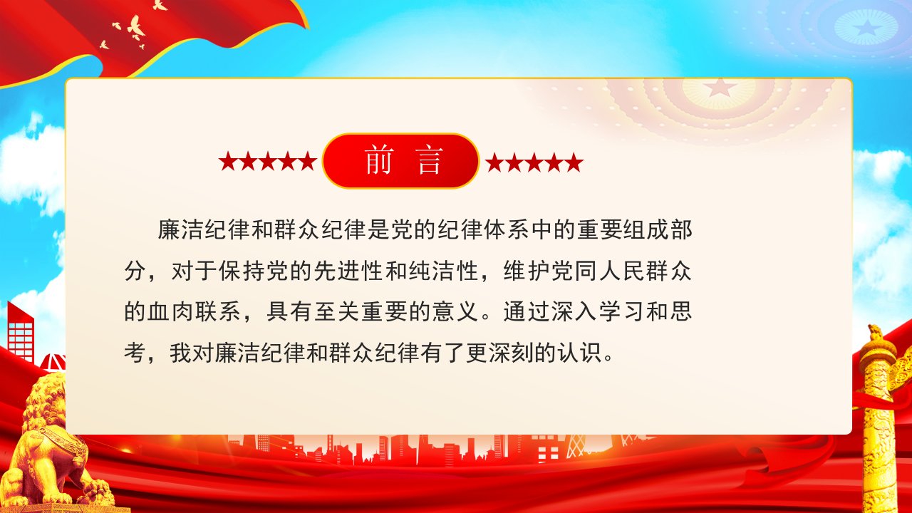 2024微党课党纪学习教育筑牢廉洁自律之基强化群众纪律之要党课ppt模板(带内容)党支部团支部党员干部学习党课课件