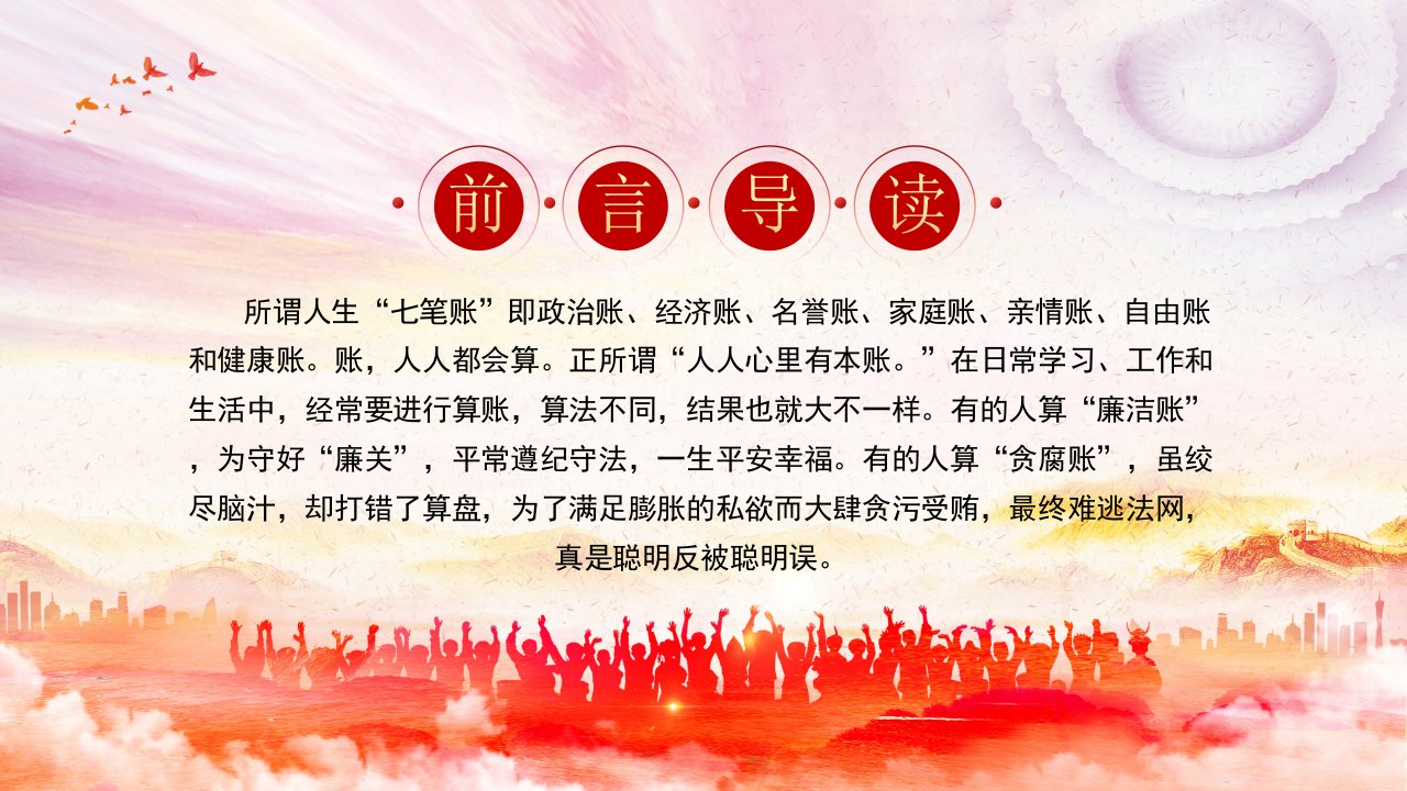 2024微党课廉洁清廉七本账党课ppt算好人生七笔账走好人生廉洁路党课ppt模板(带内容)