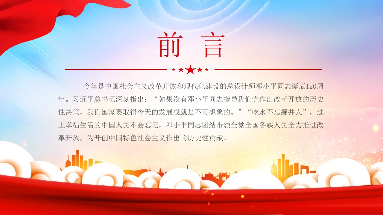 2024微党课纪念邓小平同志诞辰120周年党课ppt改革开放党课ppt模板(含配套讲稿)
