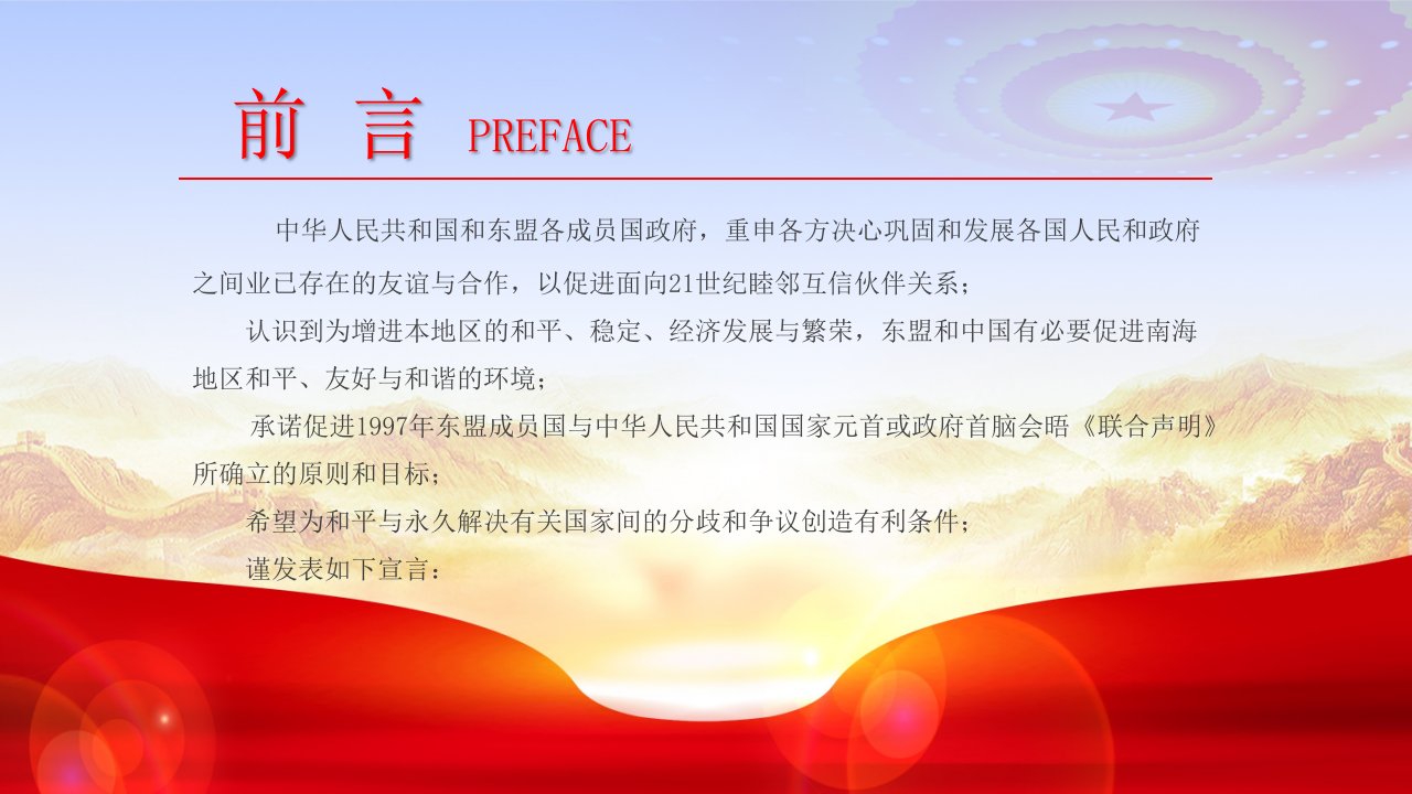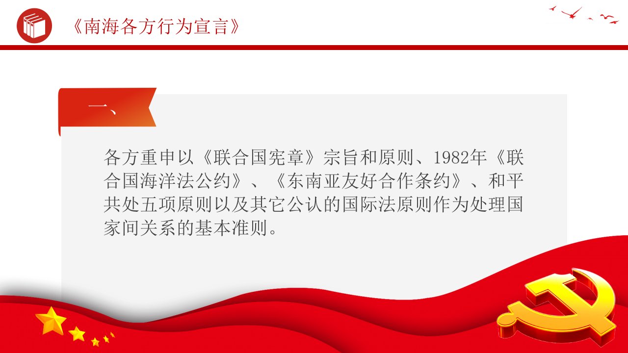 标题:南海各方行为宣言行为准则党课ppt模板(含配套讲稿)