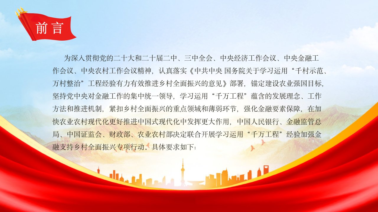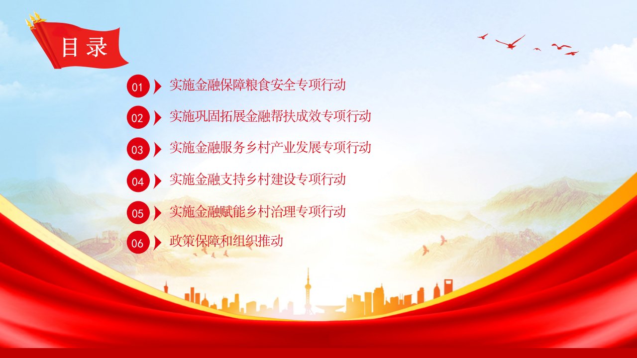 标题:2024微党课加强金融支持乡村全面振兴专项行动党课ppt模板(带内容)