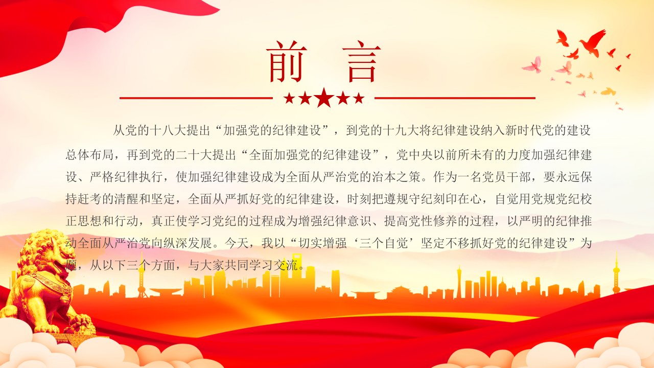 2024微党课【纪律建设ppt】三个加强三个自觉党纪党课ppt模板(含配套讲稿)