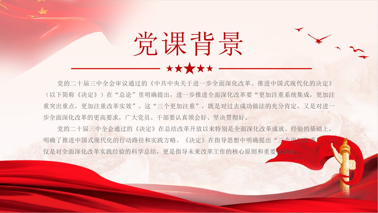 2024微党课【全面深化改革ppt】三个更加注重党课ppt模板(含配套讲稿)