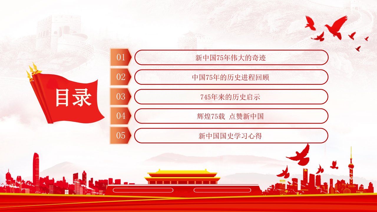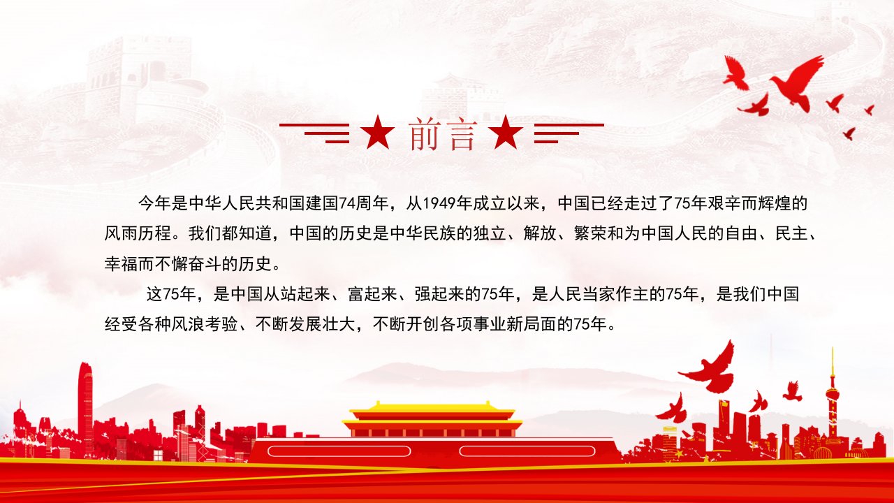 2024微党课【十一国庆ppt】庆祝中华人民共和国成立75周年国史学习党课ppt模板(带内容)