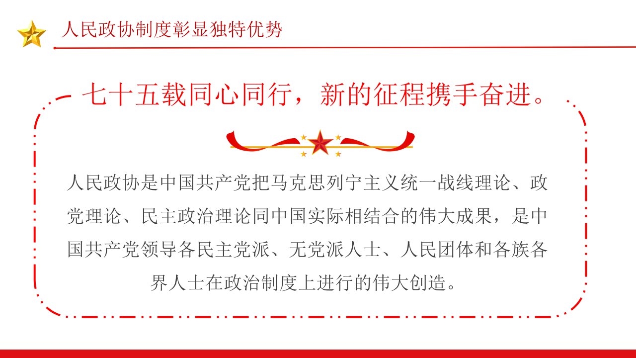 2024微党课【十一国庆ppt】人民政协制度彰显独特优势PPT人民政协成立七十五周年党课ppt模板(带内容)