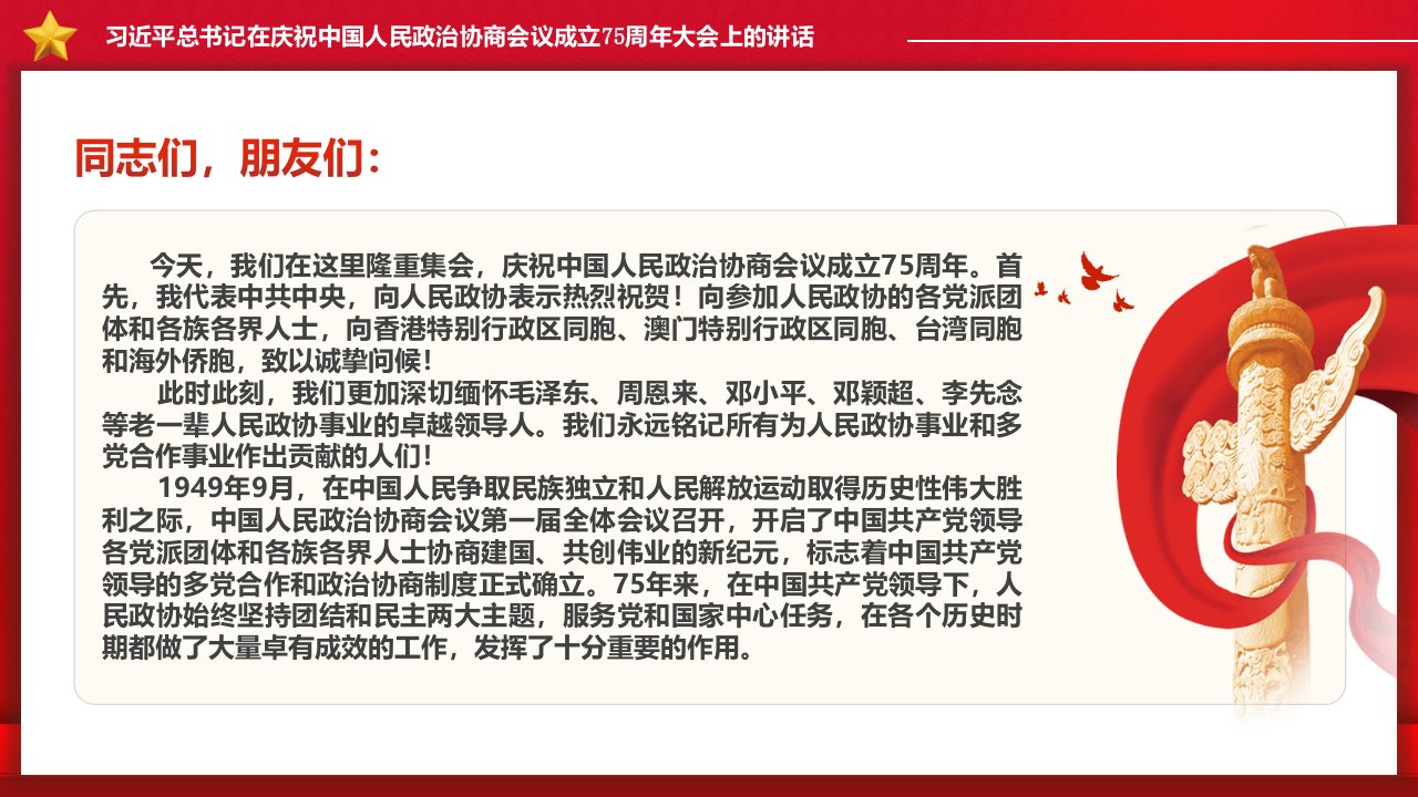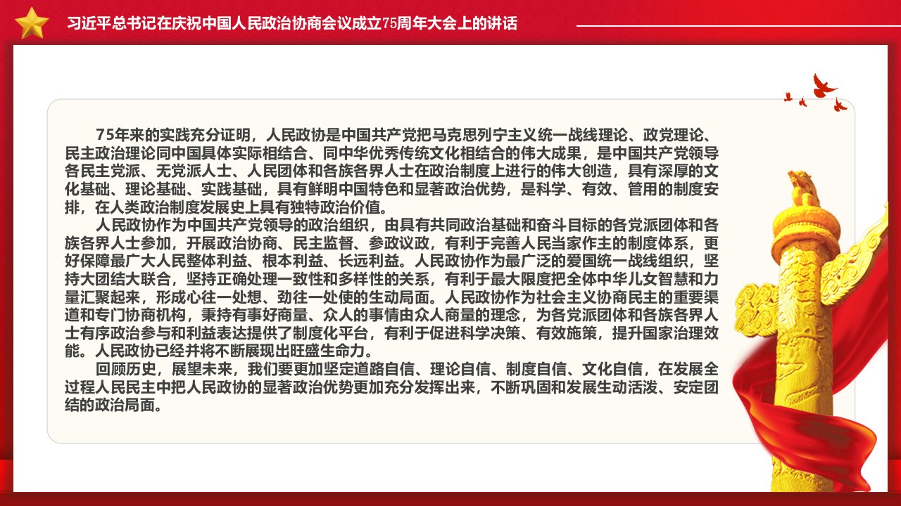 2024微党课【十一国庆ppt】习近平总书记在庆祝中国人民政治协商会议成立75周年大会上的讲话党课ppt模板(含配套讲稿)