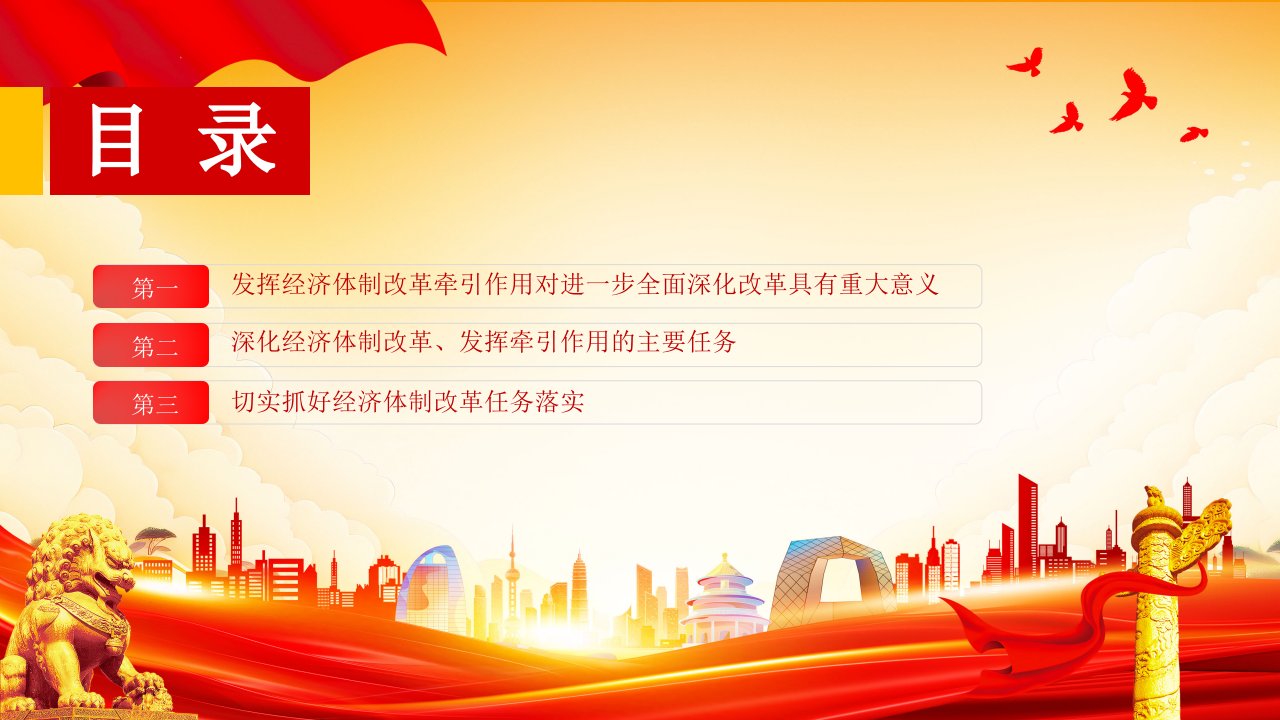 2024微党课【三中全会ppt】发挥经济体制改革牵引作用全面深化改革党课ppt模板(带内容)