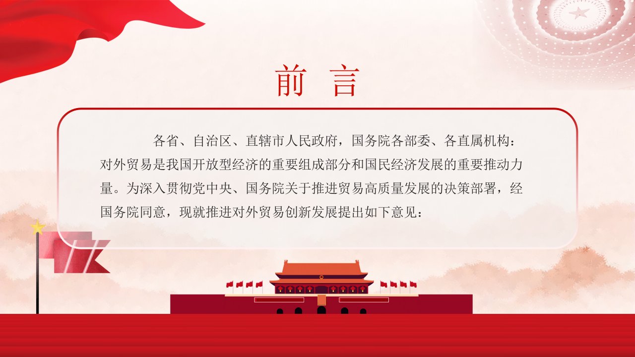 2024微党课【治国理政ppt】国务院办公厅关于推进对外贸易创新发展的实施意见党课ppt模板(含配套讲稿)