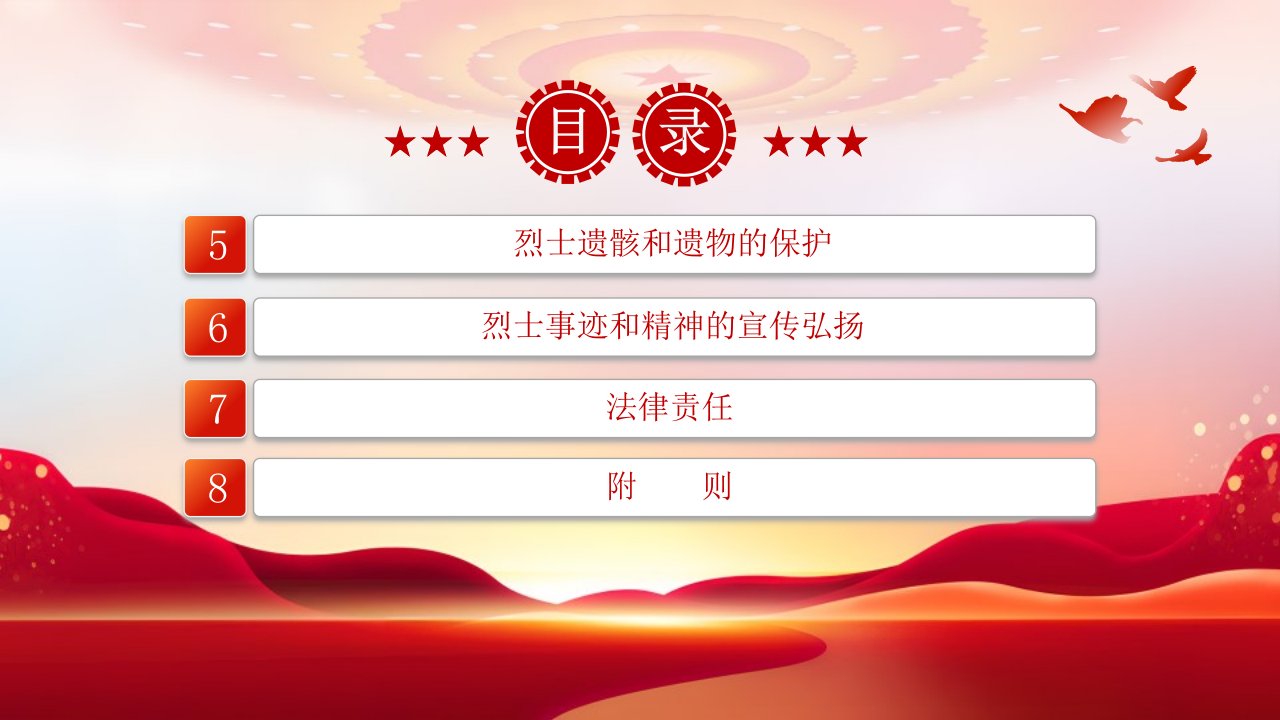 标题:2024微党课【治国理政ppt】烈士褒扬条例党课ppt模板(含配套讲稿)
