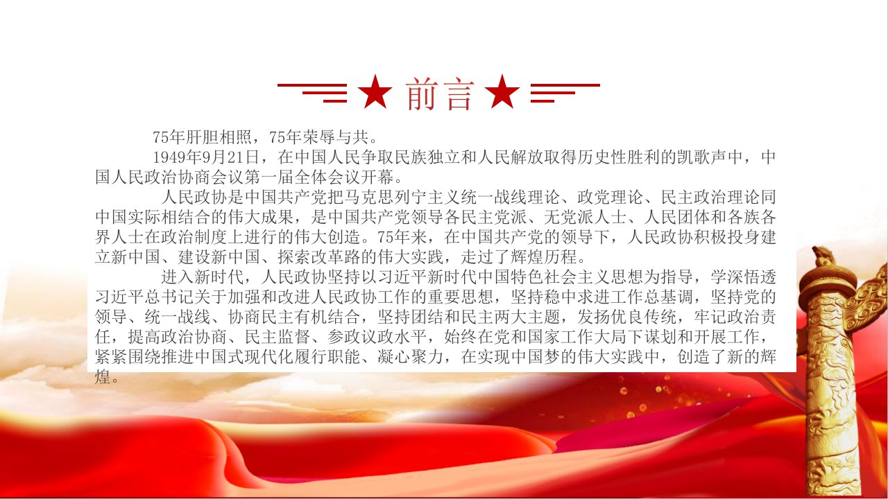 【75周年ppt】庆祝人民政协成立七十五周年教育党课ppt模板(带内容)