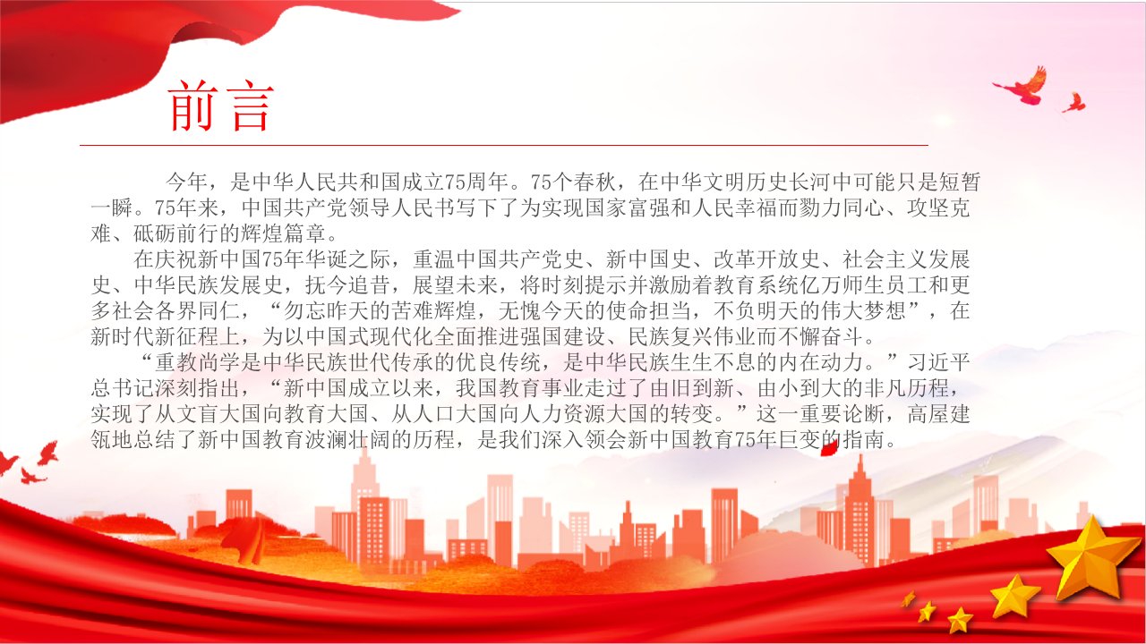 2024微党课【新中国75周年ppt】不断完善中国特色社会主义教育发展道路学习中华人民共和国75周年华诞党课ppt模板(含配套讲稿)