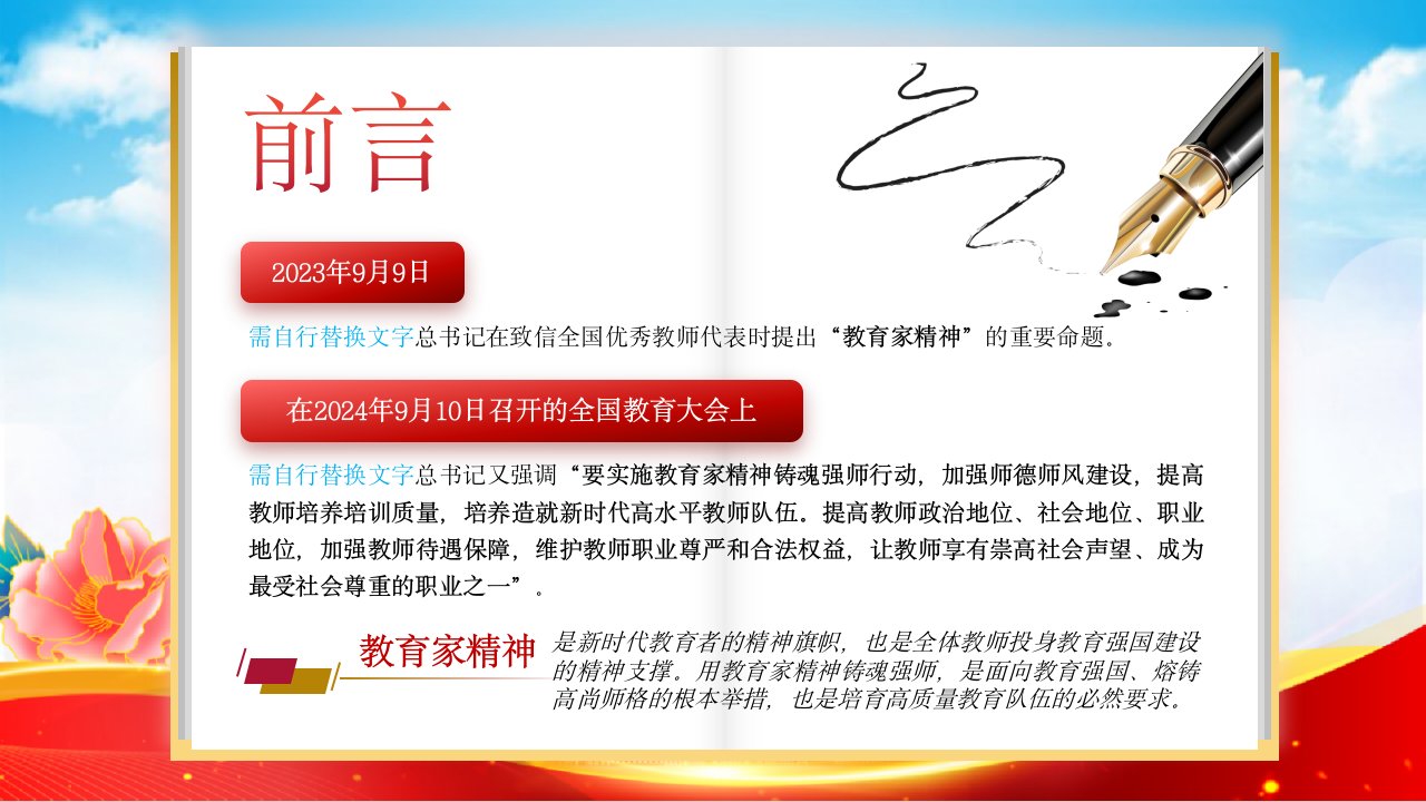 党课ppt,党课ppt模板,新时代,弘扬,教师,教育,党课,ppt模板2024微党课【老师教师ppt】大力弘扬教育家精神,培养造就新时代大国良师党课ppt模板(含配套讲稿)党课ppt,党课ppt模板,新时代,弘扬,教师,教育,党课,ppt模板2024微党课【老师教师ppt】大力弘扬教育家精神,培养造就新时代大国良师党课ppt模板(含配套讲稿)
