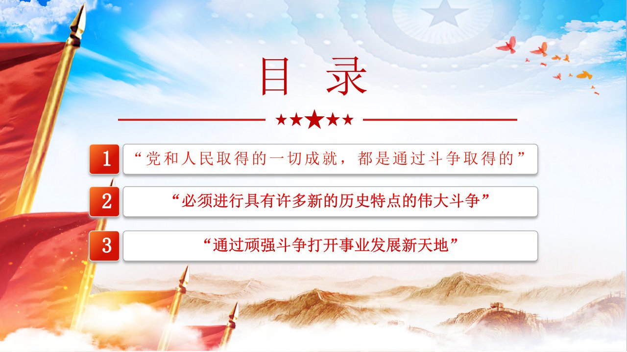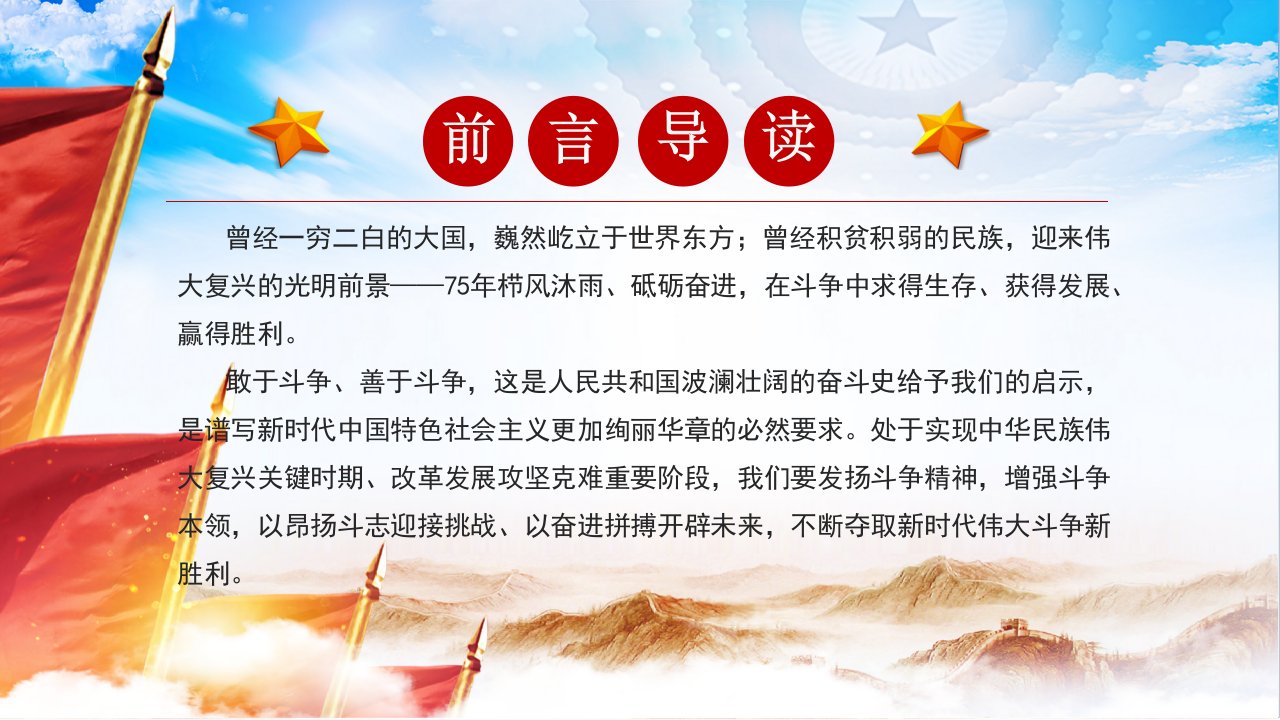 2024微党课【党员干部ppt】坚持弘扬斗争精神新中国成立75周年光辉历程经验与启示述评党课ppt模板(带内容)