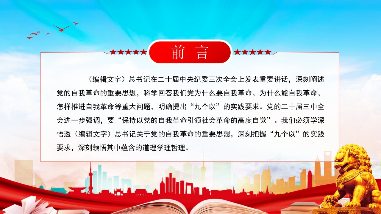 【党的自我革命ppt】准确把握党的自我革命“九个以”的思想内涵党课ppt模板(带内容)