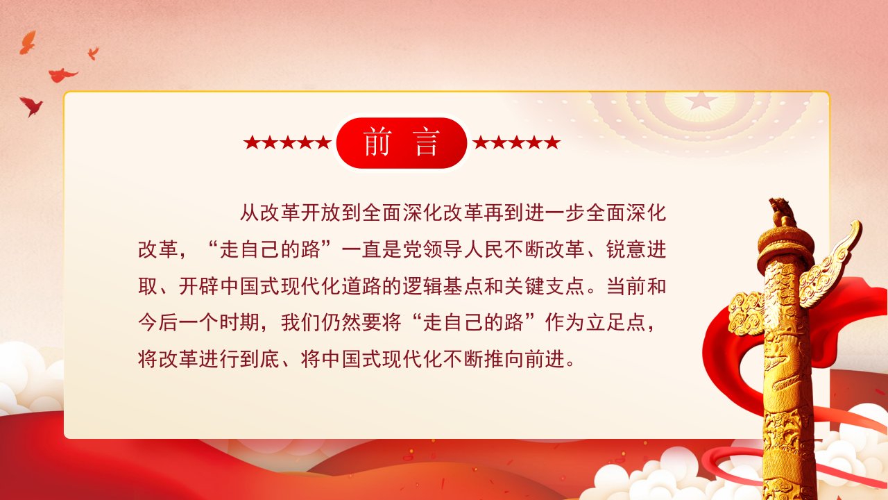 2024微党课【全面深化改革ppt】走自己的路是开辟中国式现代化道路逻辑基点党课ppt模板(带内容)