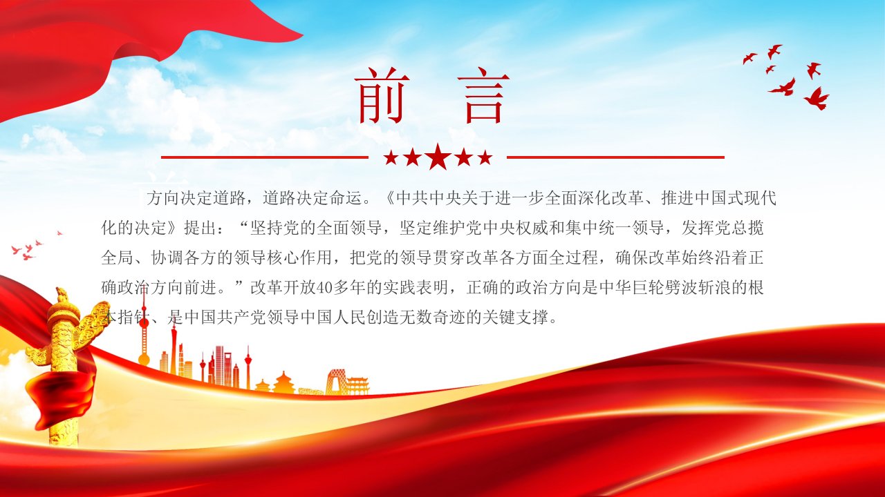 党课ppt,党课ppt模板,党课,ppt模板2024微党课「坚持党的全面领导ppt」确保改革始终沿着正确政治方向前进党课ppt模板(含配套讲稿)党课ppt,党课ppt模板,党课,ppt模板2024微党课「坚持党的全面领导ppt」确保改革始终沿着正确政治方向前进党课ppt模板(含配套讲稿)