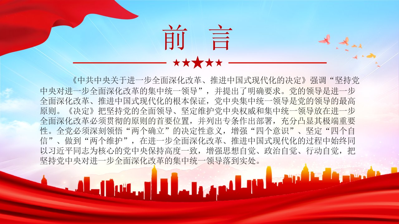 2024微党课「全面深化改革ppt」坚持党中央对进一步全面深化改革的集中统一领导主要要求党课ppt模板(含配套讲稿)