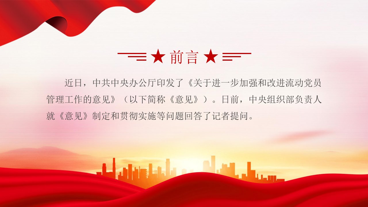 2024微党课「治国理政ppt」关于进一步加强和改进流动党员管理工作的意见党课党课ppt模板(带内容)