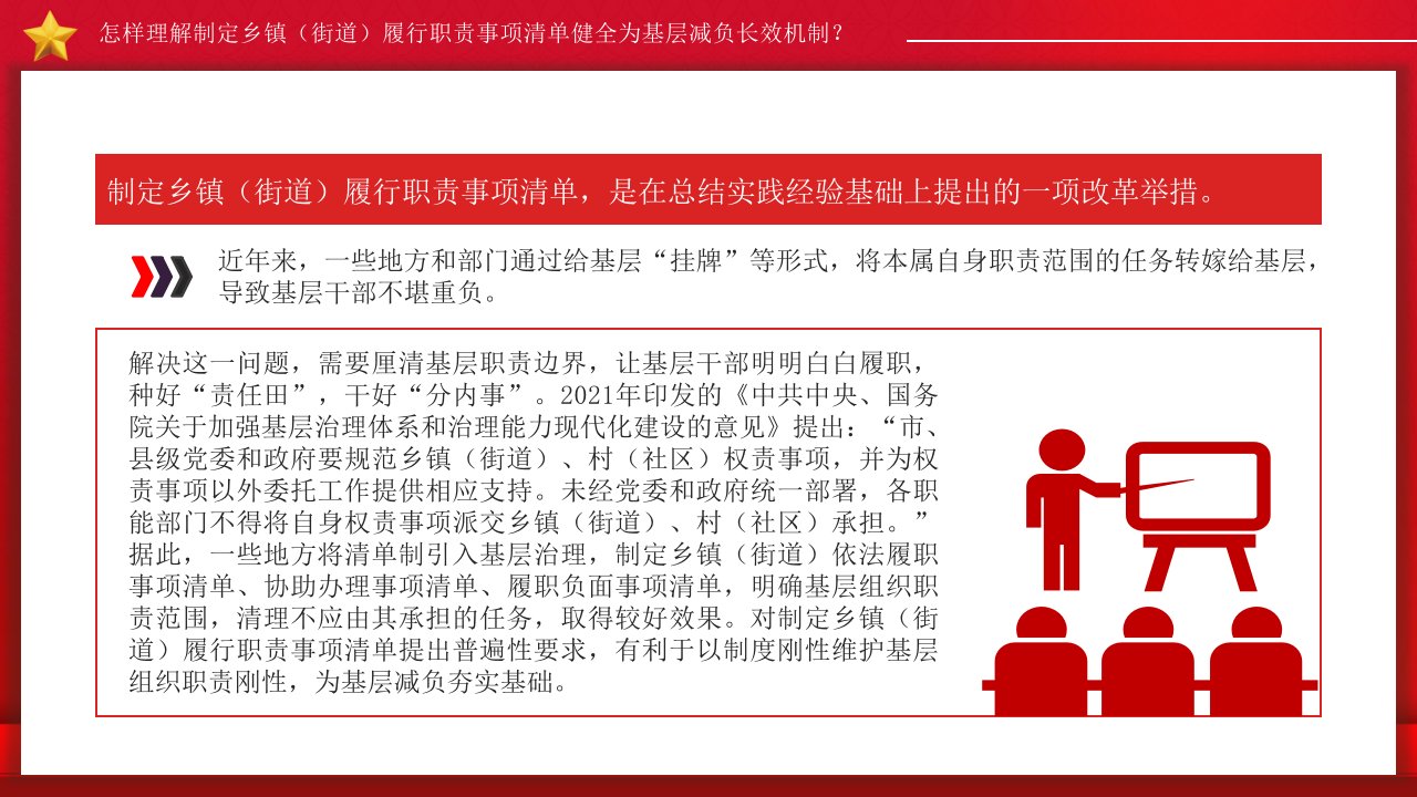 2024微党课「治国理政ppt模板」乡镇(街道)履行职责事项清单健全为基层减负长效机制党课ppt模板(含配套讲稿)