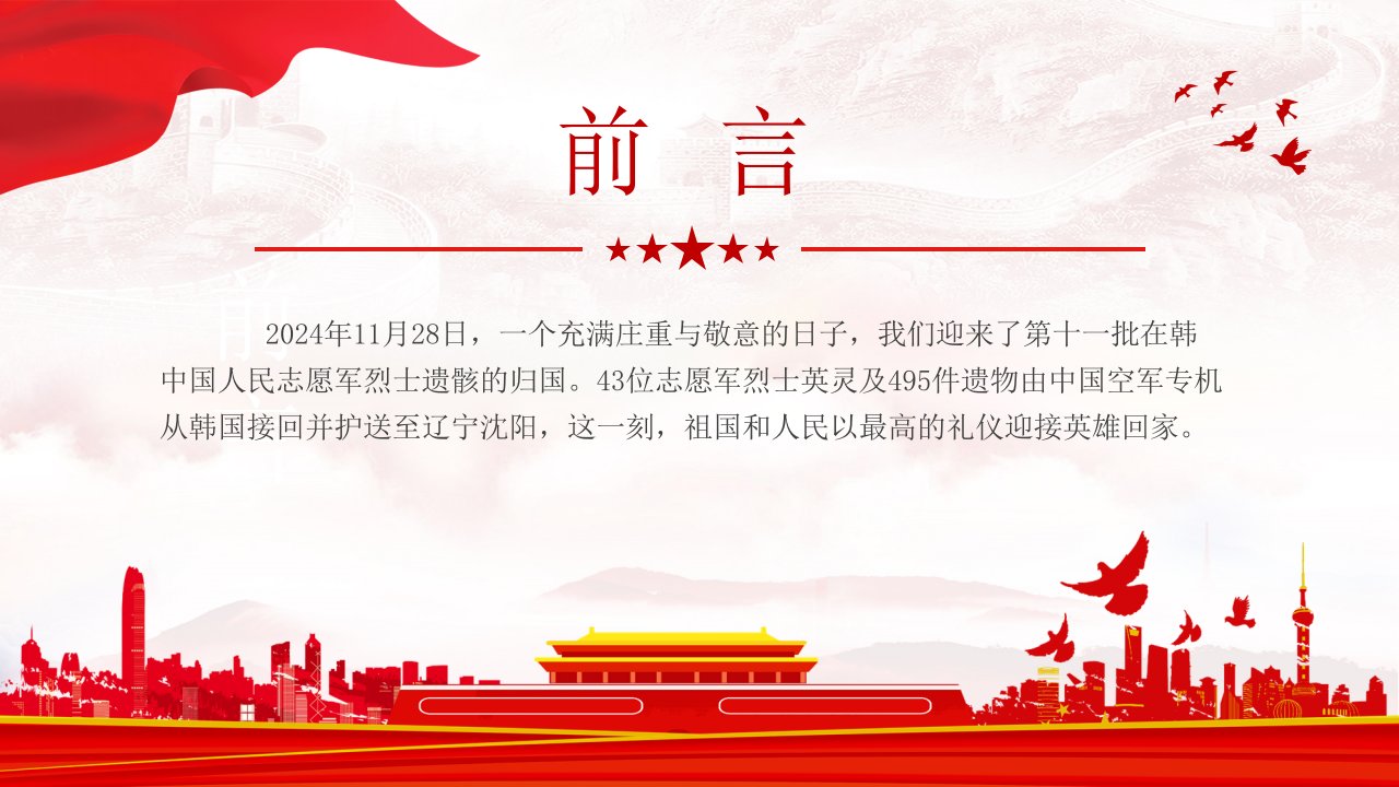 2024微党课「党史烈士ppt模板」志愿军烈士遗骸归国感悟铭记历史致敬英雄主题党课ppt模板(含配套讲稿)