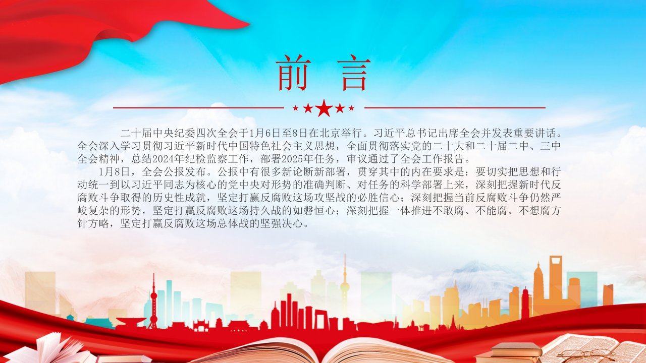 「二十届中央纪委四次全会公报ppt」新论断新部署反腐败斗争党课ppt模板(含配套讲稿)