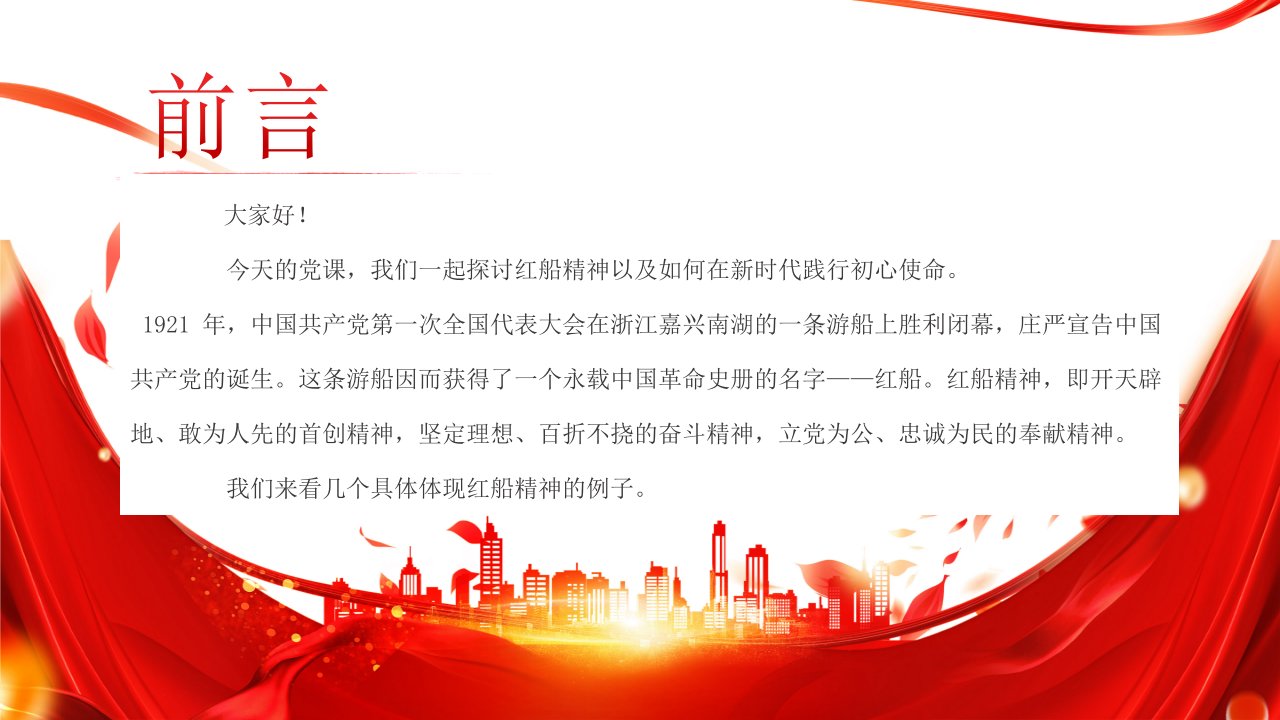 「红船初心ppt模板」弘扬红船精神践行初心使命党课ppt模板(含配套讲稿)