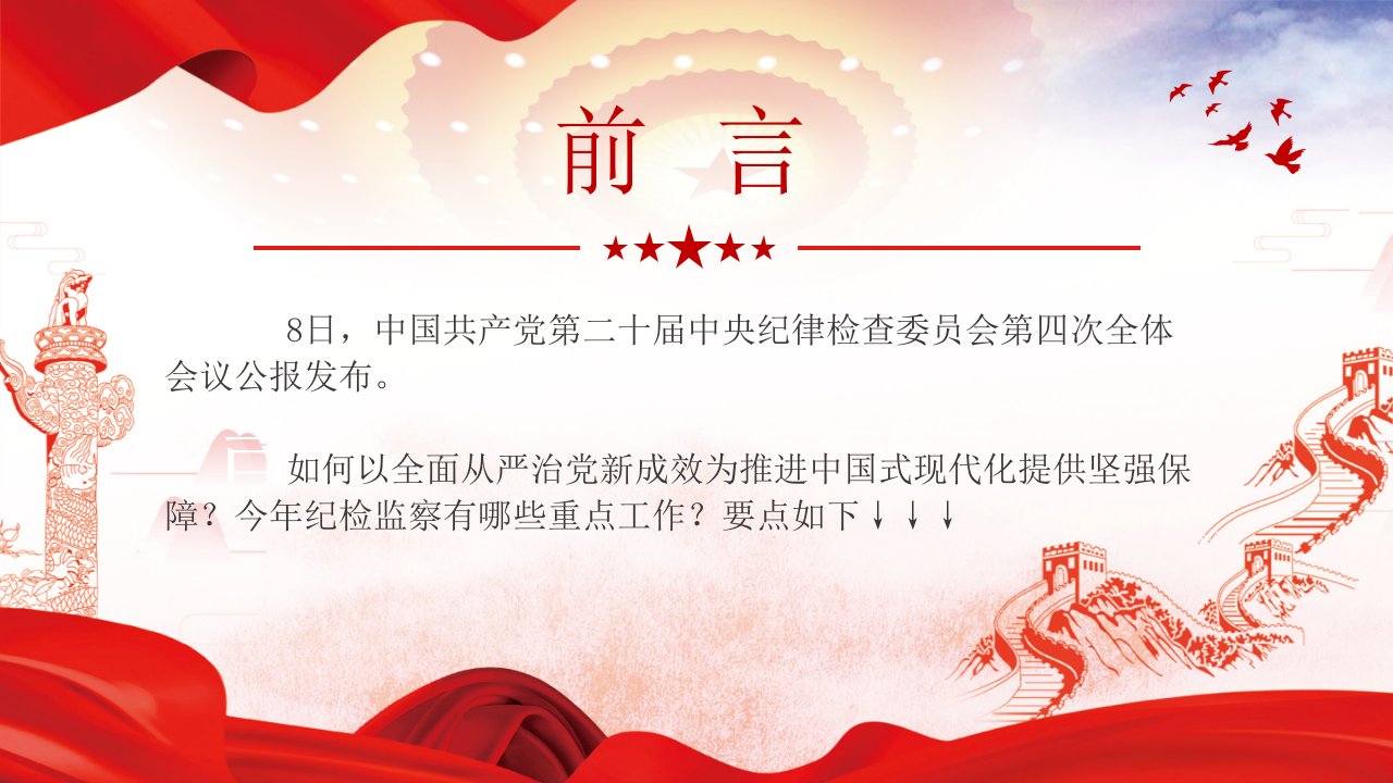 2025微党课「中央全会ppt模板」二十届中央纪委四次全会公报要点速览党课ppt模板(含配套讲稿)
