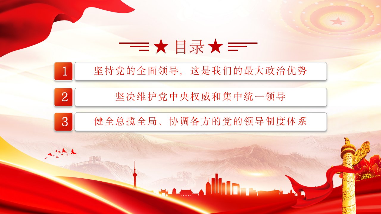 2025微党课「党的全面领导ppt」坚持和加强党的全面领导总书记重要论述党课ppt模板(带内容)