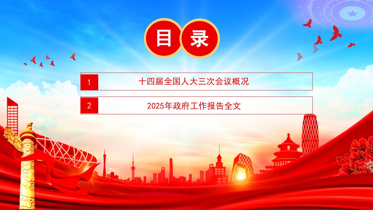 2025微党课「全国两会ppt模板」政府工作报告全文两会关注民生主题党课ppt模板(带内容)