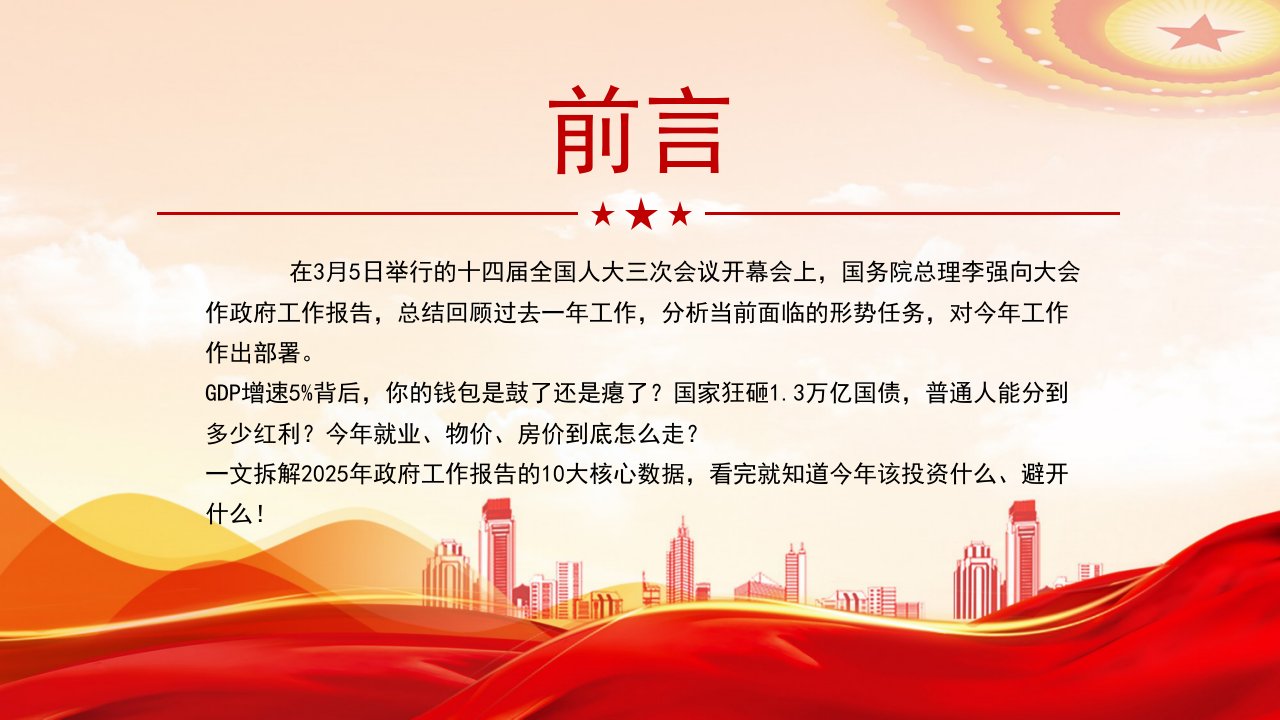 「全国两会ppt模板」数读2025政府工作报告两会精神解读党课ppt模板(含配套讲稿)