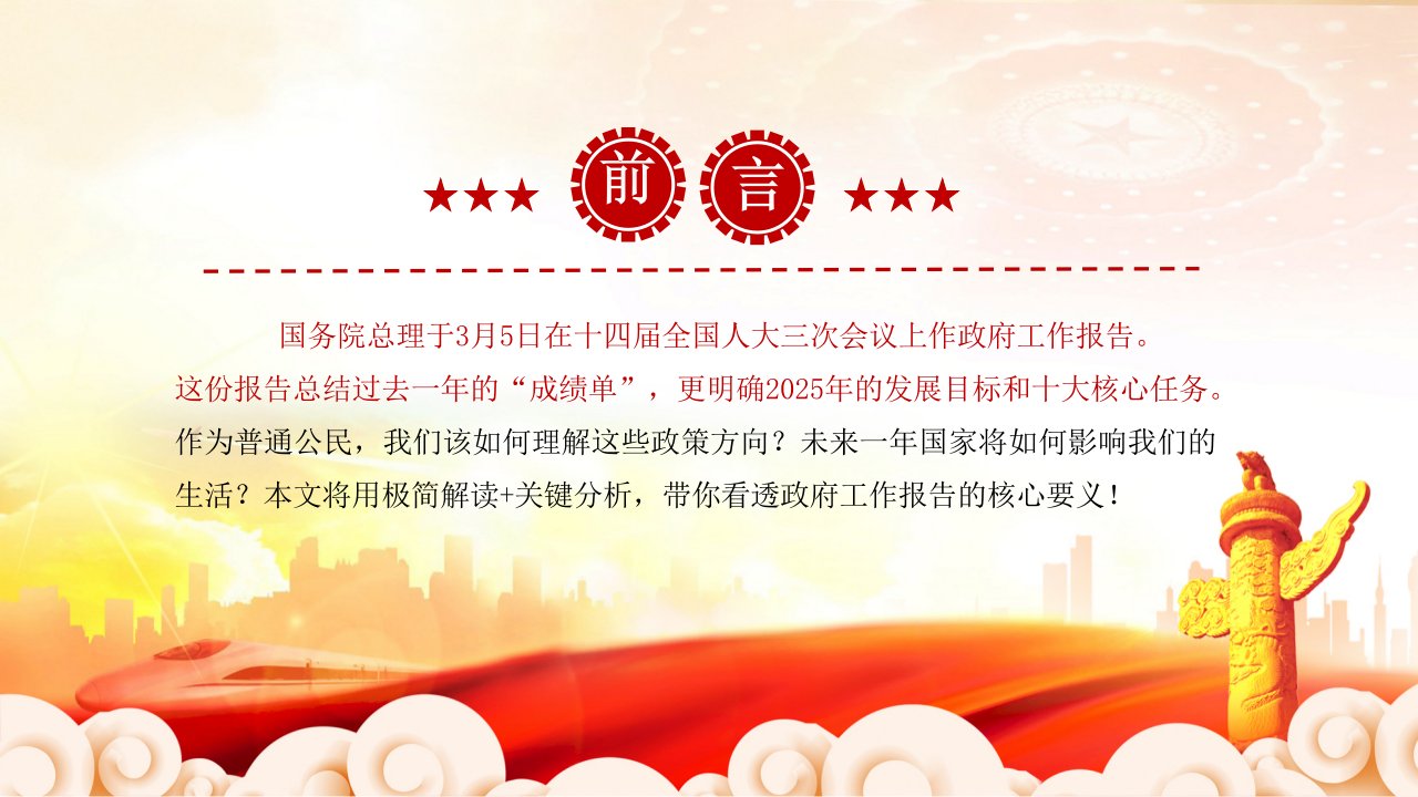 「政府工作报告ppt」学习解读2025年政府工作报告全国两会专题党课ppt模板(含配套讲稿)