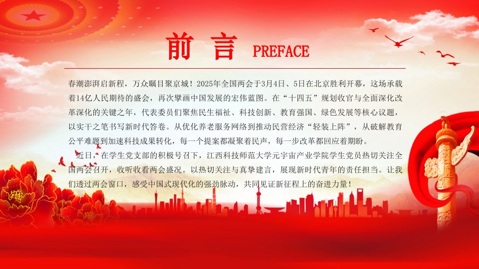 2025微党课「全国两会ppt模板」学习两会精神畅谈心得体会高校学生党员党课ppt模板(含配套讲稿)