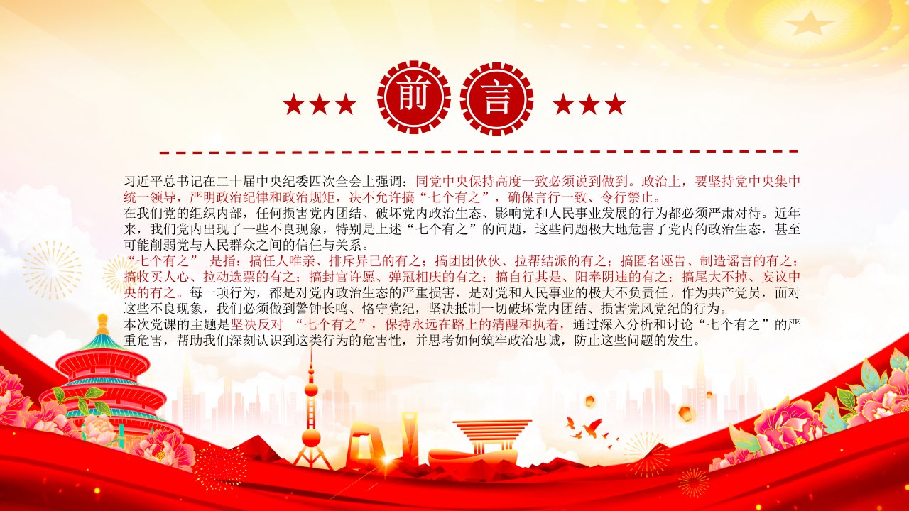 「保持高度一致ppt」坚决反对“七个有之”党内政治生态专题党课ppt模板(含配套讲稿)