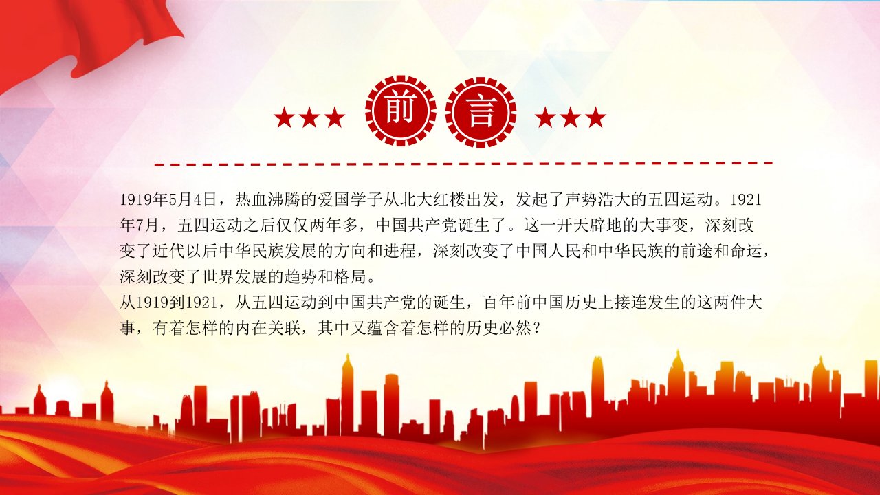 「五四运动ppt模板」五四运动与中国共产党的诞生党史2025纪念五四运动106周年系列课件党课ppt模板(含配套讲稿)