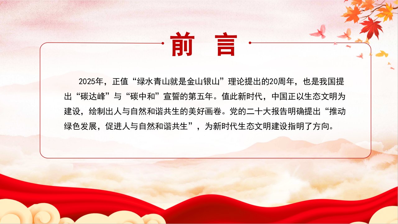 「新时代生态文明建设ppt」“绿水青山就是金山银山”理念提出的20周年党的生态文明建设主题党课ppt模板(含配套讲稿)