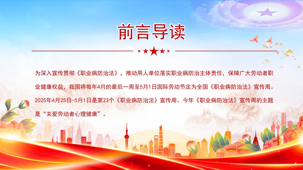 「职业病防治法ppt」职业病防治法宣传周关爱劳动者心理健康课件党课ppt模板(带内容)