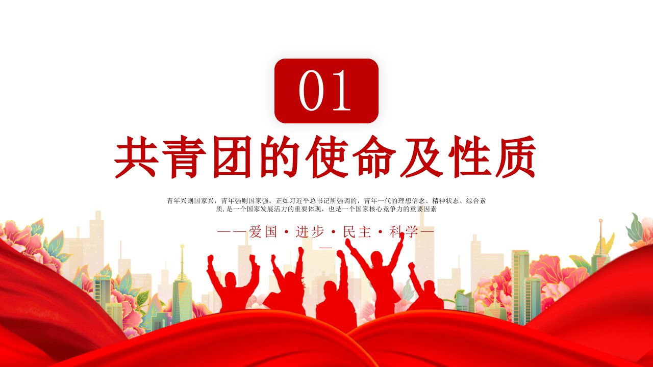 「五四青年节ppt」五四精神学习纪念五四运动青春跟党走建功新时代党课ppt模板(带内容)