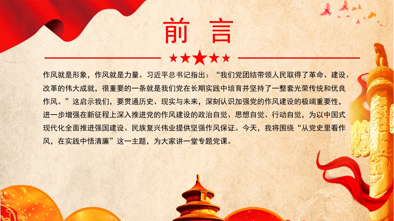 2025微党课「作风廉洁ppt模板」作风建设主题党课从党史里看作风在实践中悟清廉党课ppt模板(含配套讲稿)