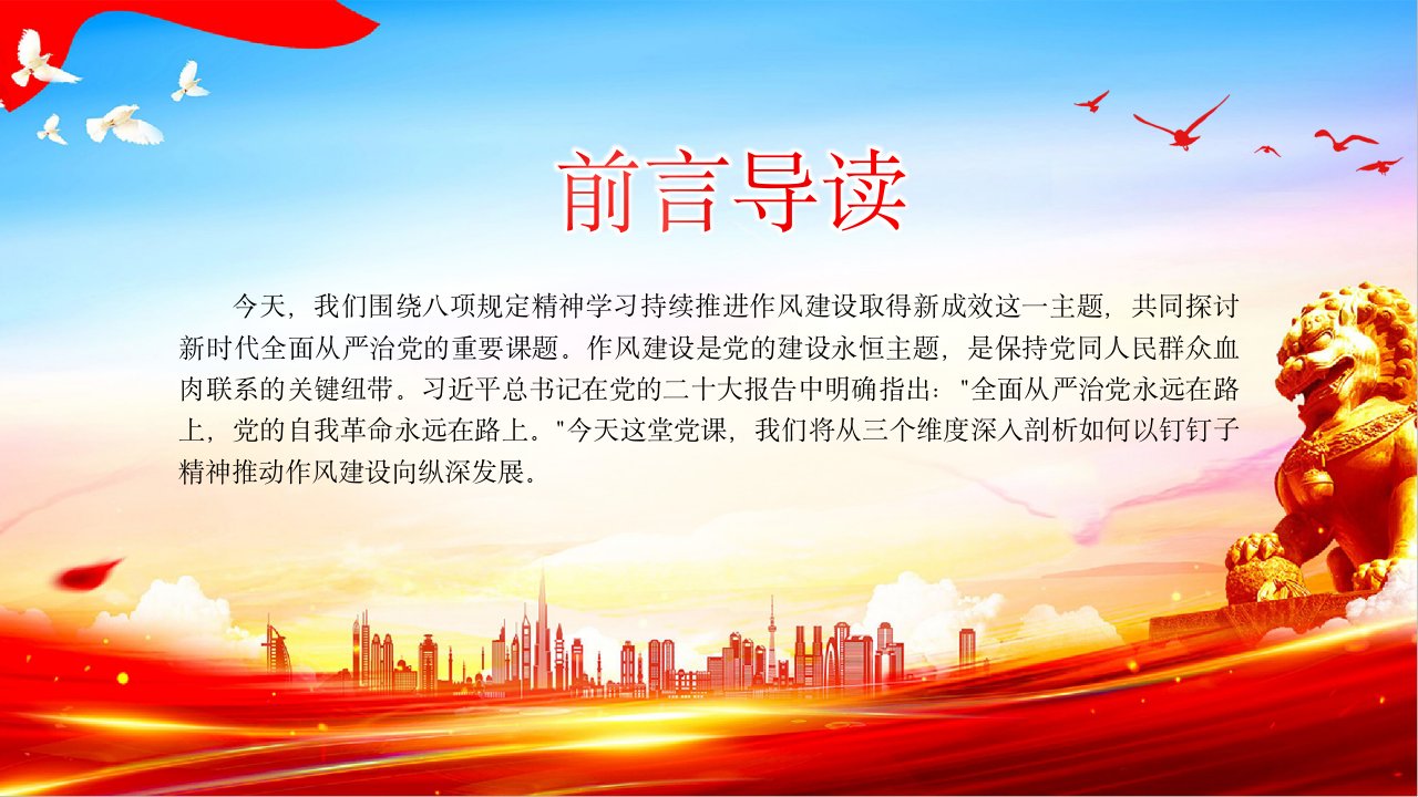 「作风建设ppt模板」以钉钉子精神推动作风建设向纵深发展党课ppt模板(含配套讲稿)