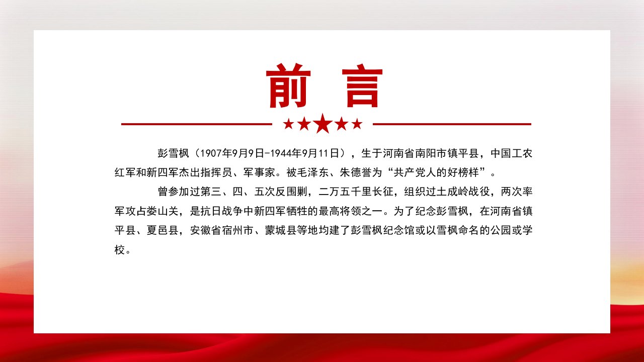 标题:「党员榜样ppt模板」共产党人好榜样彭雪枫党课ppt模板(含配套讲稿)