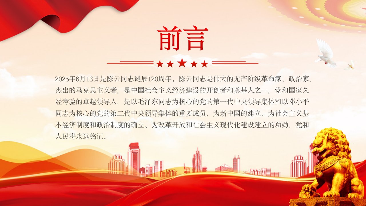 「党史历史ppt模板」纪念陈云同志诞辰120周年党课ppt模板(含配套讲稿)