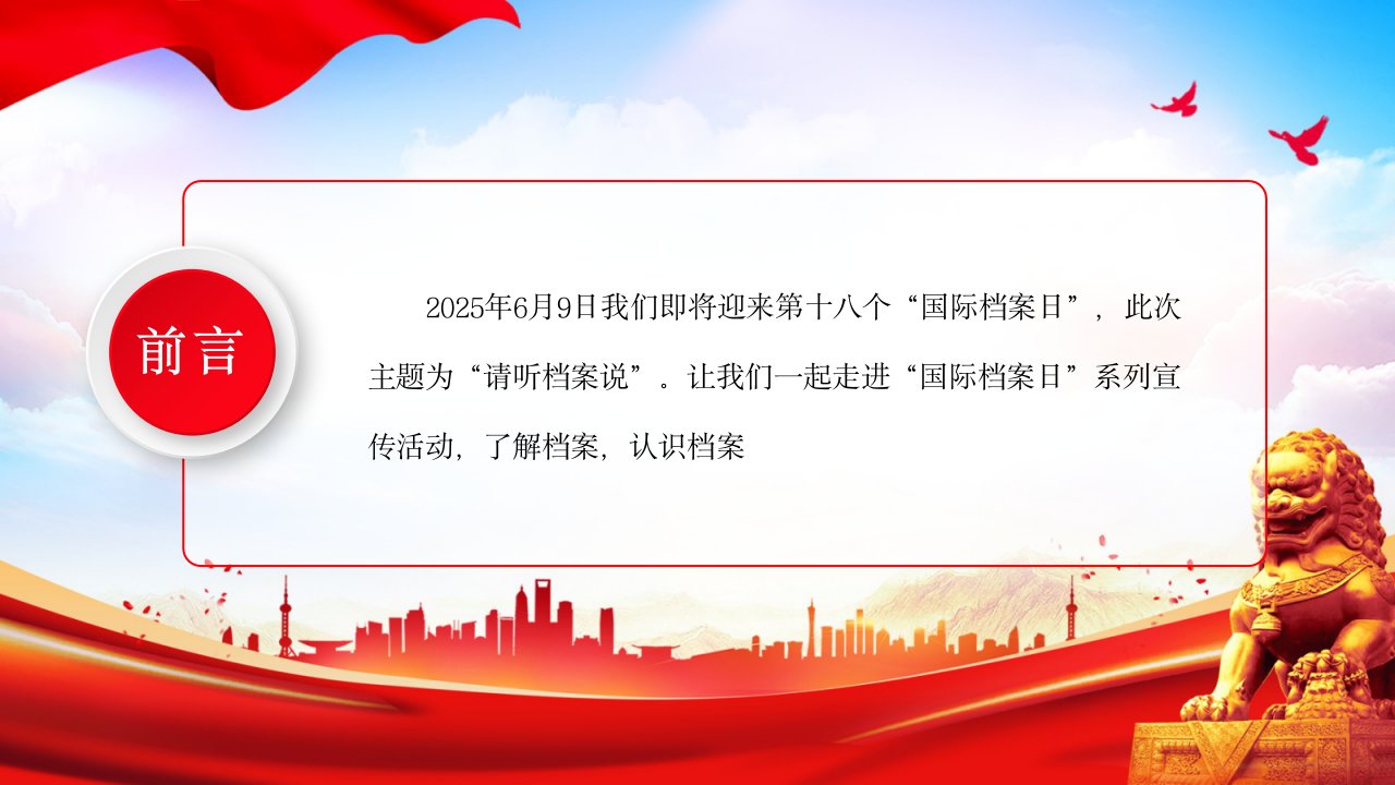 「国际档案日ppt」第十八个国际档案日请听档案说主题宣传党课ppt模板(含配套讲稿)