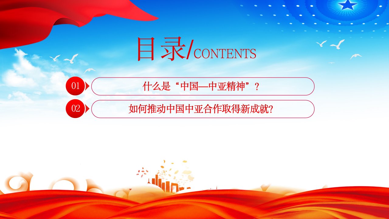「中亚精神ppt模板」弘扬“中国—中亚精神”推动地区合作高质量发展党课ppt模板(含配套讲稿)