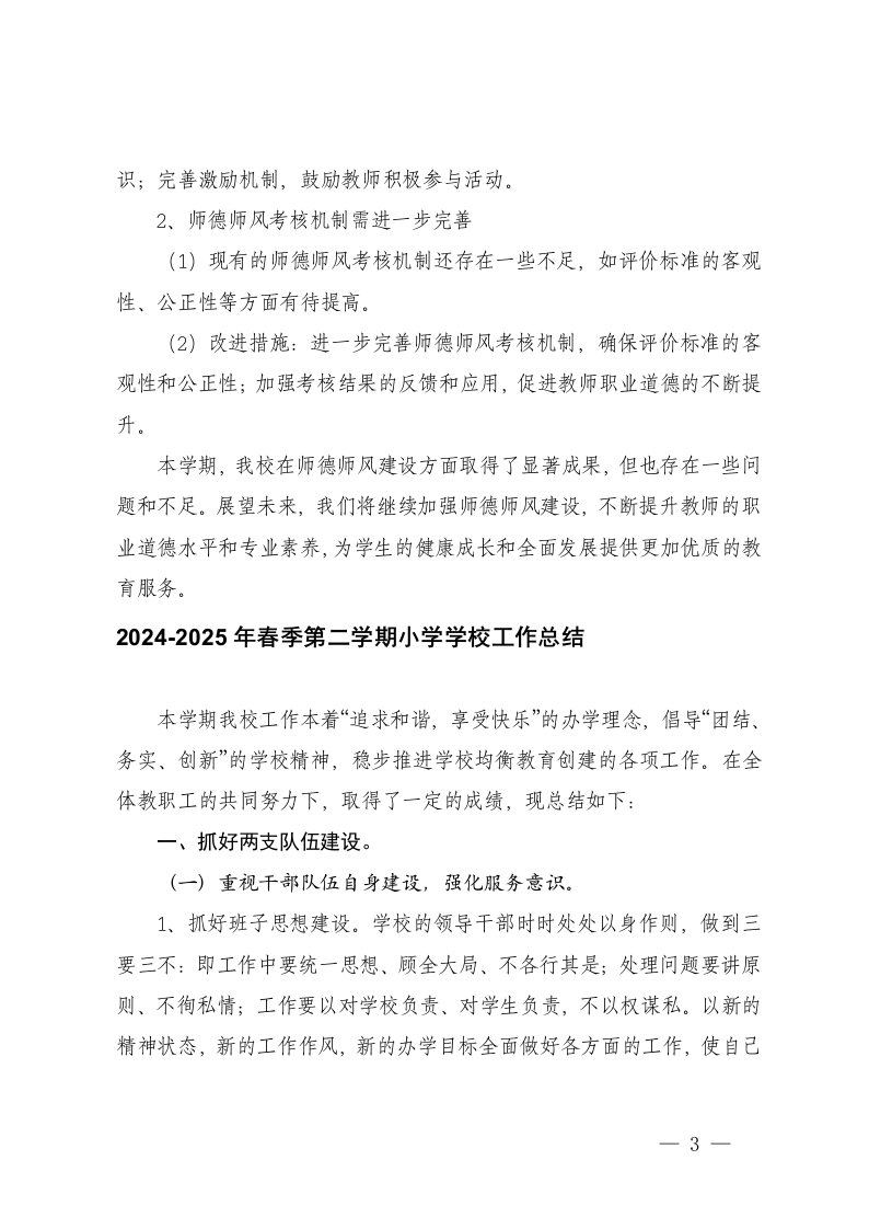 标题:2024-2025年春季第二学期小学师德师风工作总结学校工作总结安全工作总结