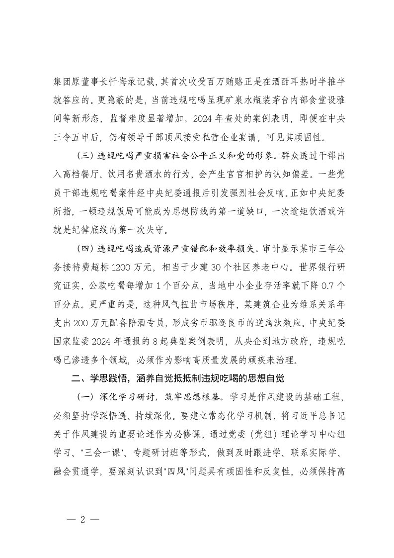 2025年在集中整治违规吃喝专题民主生活会上的讲话提高站位学思践悟落实责任