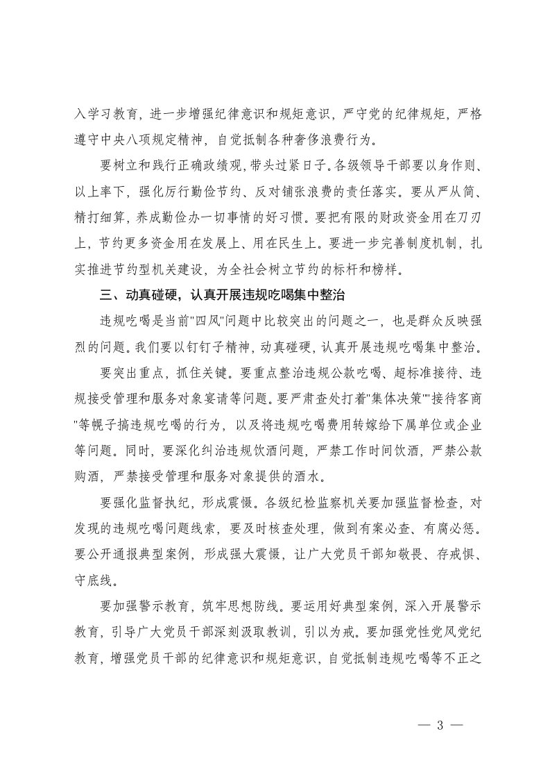 在违规吃喝风集中整治工作推进会上的讲话在学习贯彻党政机关厉行节约反对浪费条例动员部署会上的讲话