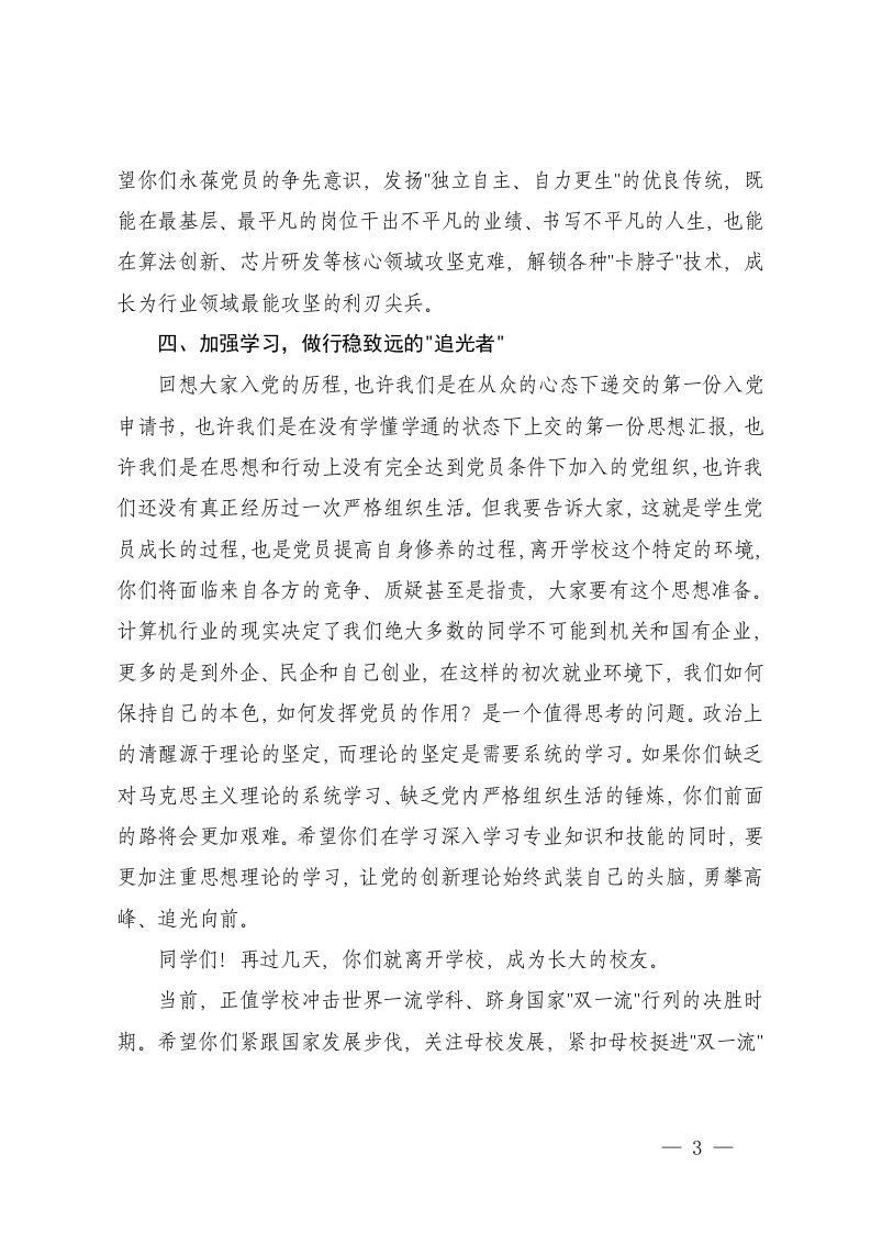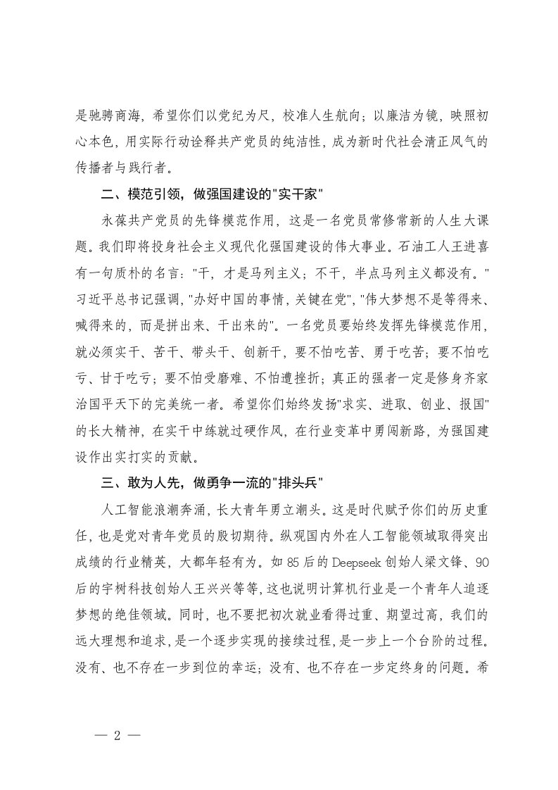 标题:2篇在学院2025届毕业生党员主题党日活动上的讲话