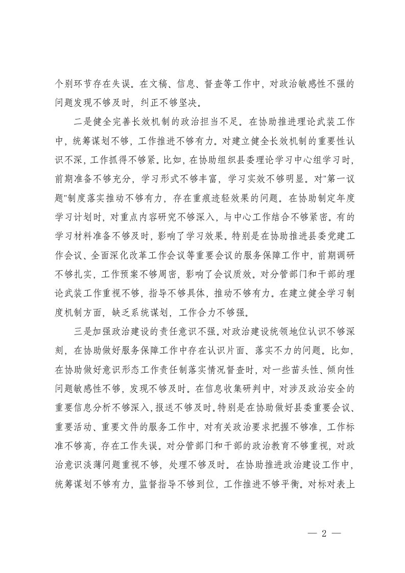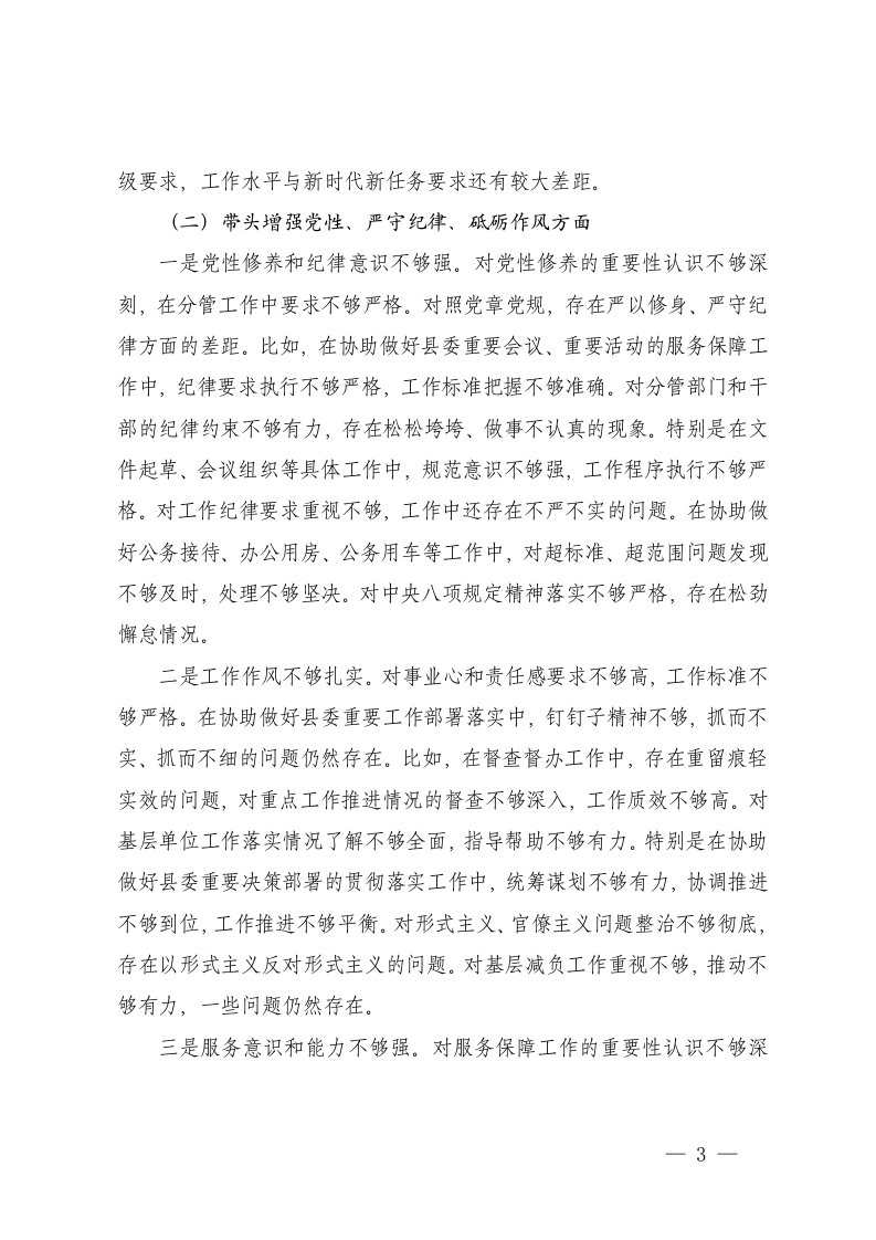 标题:2篇县委办副主任2024年度民主生活会对照材料四个带头