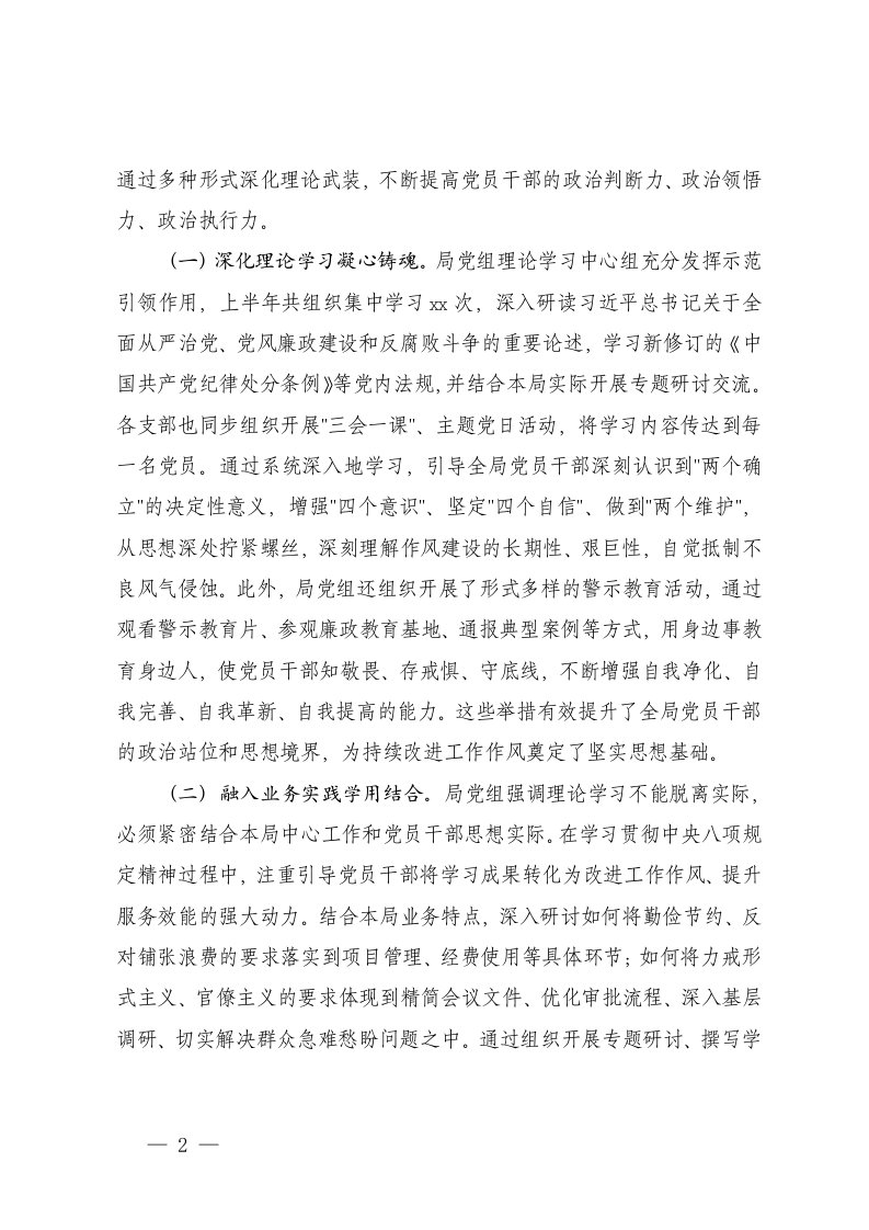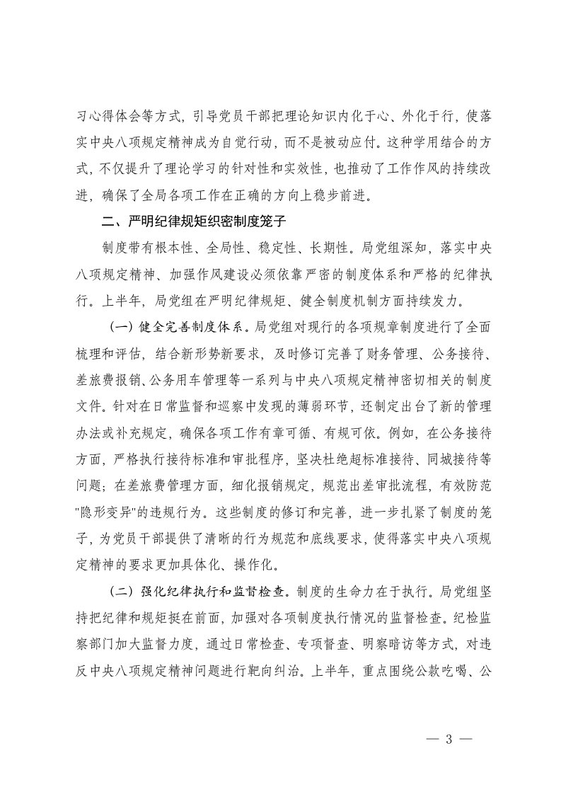 标题:4篇党组2025年上半年落实精神及作风建设情况报告
